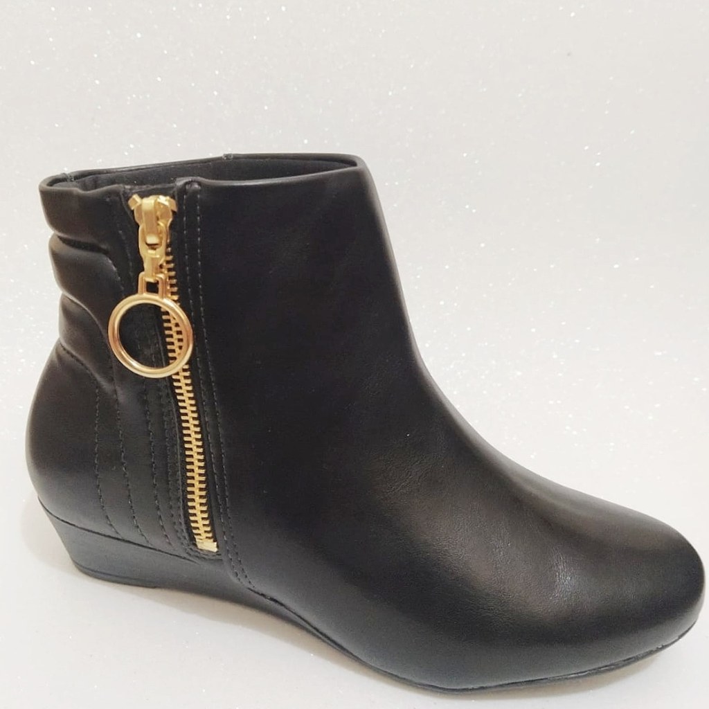 Este modelo possui zìper na lateral com detalhes em costura na outra lateral.